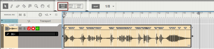 perfect for vocal pitch correction/manipulation. See “Editing audio in Pitch Edit mode” for more information.In Comp Edit mode you can cut out segments of several Takes (recordings) and compile into a final clip. Here you can also insert silence segments to e.g. remove noise from silent parts in your audio clips. See “Editing audio in the Comp Editor”.The Stretch and Transpose Type, together with the Clip Type, also determines the default Edit Mode in which the clip will open when you double-click it, see “Opening audio clips for editing”. However, you can always change the Edit Mode for a clip manually, if you like.The formants are preserved and are not transposed along with the audio. This will keep the original character of the vocal and will only affect the pitch. “Vocal” is also the default Stretch and Transpose Type for editing audio in Pitch Edit mode, see “Editing audio in Pitch Edit mode”.When the audio clip is in Slice Edit mode you can stretch, move and quantize audio slices etc., see “Editing audio in Slice Edit mode”. When the clip is open in Pitch Edit mode you can pitch-correct and transpose individual notes (pitches) in monophonic audio recordings, see “Editing audio in Pitch Edit mode”. When the clip is open in Comp Edit mode you can alternate the playback between several recordings and compile into a single recording, see “Editing audio in the Comp Editor”.