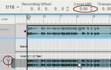 In this section we will describe audio editing procedures that are common for Single Take clips and Comp clips when edited in the Comp Editor. Comp clip specific procedures are described in “Comping audio”.Click and drag these handles horizontally to introduce a fade in and/or fade out of the audio in the clip. The fading is non-destructive and can be changed at any time. If Snap is activated (see “Snap”), the set (Arrange Mode) Snap value is taken into account when moving the Fade Handles.