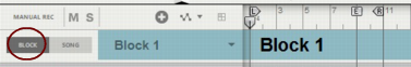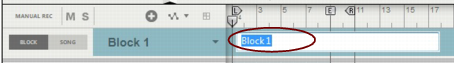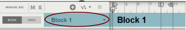 Editing Blocks in the Block View Selecting a Block for editing Selecting a Block for editing is done in the Block View. Select the Block you want to work with as follows: 1. Make sure “Enable Blocks” is activated on the Options menu. 2. Click the Block button on the Blocks Track to switch to Block View. Block 1 appears by default on the arrangement pane: 3. Select a Block (1-32) from the Blocks drop-down list in the Track List if desired. In this example, we will stick to Block 1. The Block name is shown on the Blocks Track. Renaming Blocks If you don’t want to use the default Block names you can easily rename them: Double-click the Block name on the Blocks Track in the Block View, type in a new name and press [Return]. Defining the Block length The length of a Block is defined using the End Marker in the Blocks view: 1. Select desired Block in the Block View as described in “Selecting a Block for editing”. 2. Adjust the End Marker to the desired position by clicking and dragging it in the Ruler. • The Block length is always defined from the beginning of the Ruler to the End Marker. The Left and Right Loop Locators have no influence on the Block length. • When the sequencer is running in Block View, it will automatically loop at the End Marker. The Loop Locators can also be used in Block View to loop at other positions, if Loop On/Off is activated on the Transport Panel. However, in Song View the Loop Locator settings used in the Block View will be ignored. • The Block length can be set individually for each of the 32 Blocks. • The Block length can be changed at anytime by adjusting the End Marker in the Blocks view. Changing Block color Selecting separate colors for your blocks can be useful when you arrange your blocks in the Song View later on. All 32 Blocks already have default colors but these can easily be changed: Select a color from the Block Color palette on the Blocks Track context menu or from the Edit menu. This applies the selected color to the Block. The sequencer tracks and any clips in the Block will maintain their original colors. Recording in the Block View Recording on tracks in the Block View is done in the same ways as when recording in the regular Song View. Any events or recordings to the right of the End Marker in the Block View will be ignored when the Block is played back in the Song View. Refer to “Recording in the Sequencer” for details about recording. Editing clips in the Block View Editing events in clips in the Block View is done in the same way as when editing clips in the Song View. Double-click desired clip to open it for editing in Edit Mode, or click the Edit Mode button in the Toolbar. Refer to “Note and Automation Editing” and “Audio Editing in the Sequencer” for details about editing clips. Arranging clips in the Block View Arranging clips in the Block View is done in the same ways as when arranging clips in the Song View. Any clips, or parts of clips, to the right of the End Marker in the Block View will be ignored when the Block is played back in the Song View. Refer to “Arranging in the Sequencer”.