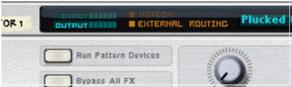 About internal and external connections Unlike other devices, the Combinator contains both external and internal audio connections. External connections are used to connect a Combinator to devices outside the Combi. Internal connections are how devices within the Combi are connected. External connections The “Combi Output L/R” connectors carry the audio output of the Combinator. This output connects with a device outside the Combi, normally a mixer. Internally, this output is connected to the “From Devices” connectors. When you create a new Combinator this output will be auto-routed to the first available mixer input channel. The “Combi Input L/R” connectors is the input to the Combinator (used for effect Combis only). Internally, this input is connected to the “To Devices” connectors. Internal Connections The “From Devices L/R” inputs is where the outputs from devices in the Combi are connected. The “To Devices L/R” outputs connect to an input on a device in the effect Combi. About External Routing If an individual device in the Combi is directly connected to a device outside the Combinator, this is known as an “External Routing” connection, which should generally be avoided. The reason for this is that such connections are not saved with the Combi patch. Therefore, all connections to/from a Combi should pass via the To/From Device connectors on the Combinator device if you wish to make the Combi self-contained. If a Combi contains external routing connections, this is indicated both on the front and back panels of the Combinator; On the front panel “External Routing” is displayed in the Patch name display, and on the back panel a LED indicator is lit. It is still possible to use a Combi with External Routing connections within the context of a song (where all routings are saved with the song). Just keep in mind that the external routing connections will not be part of the patch! How to avoid external routing connections As explained previously, all connections to/from a Combinator device should pass via the To/From Device connectors in order to make the Combi self-contained. Therefore you need to include a mixer device for Combis with more than 2 device outputs. Say you were to combine three instrument devices (each with stereo outputs connected to a mixer) in order to create a layered or split instrument Combi. If you simply selected these three instrument devices (but not the mixer) and then selected “Combine”, only one of the devices would be auto-routed to the “From Devices” connectors, while the other two devices would have the same connections they had before combining. Therefore: When combining several instrument devices, connect them to a mixer device and include this mixer in the Combi. This way, all the instrument device outputs in the Combi can be connected to separate input channels in the mixer. The mixer device output can then be routed via the “From Devices” connectors and thus the Combi will be self-contained. Instrument devices and effects connected to a Line Mixer 6:2 within the Combi. The Line Mixer 6:2 is ideally suited for mixing device outputs in Combis (see “The Line Mixer 6:2”).