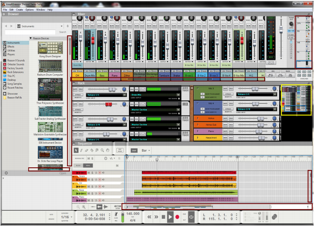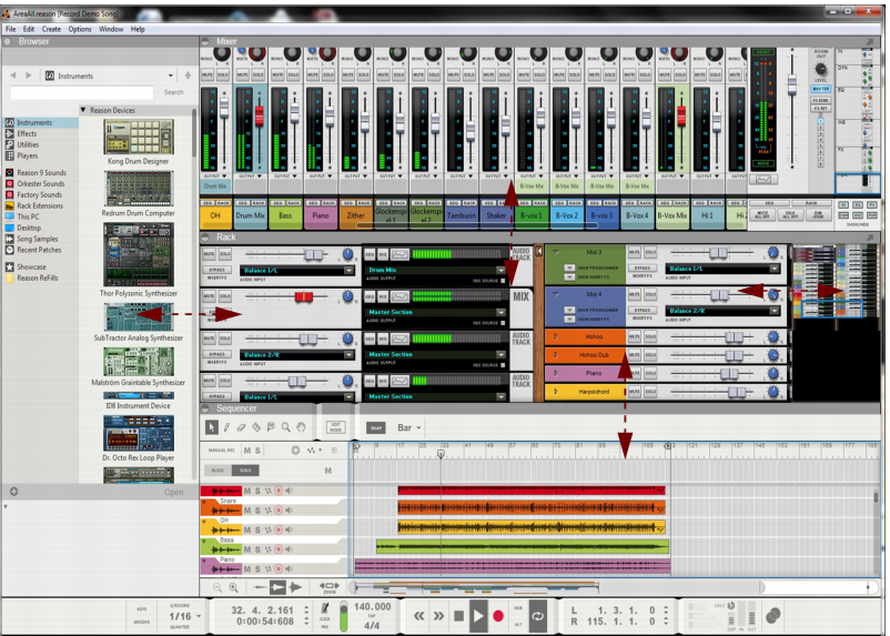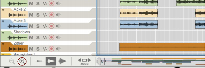 In the Sequencer you have to manually switch to the Hand Tool by selecting it from the sequencer Toolbar. With the Hand Tool selected, you can scroll in any direction on the Edit/Arrangement Pane. Refer to “Hand Tool” for more information.In the Sequencer it’s possible to zoom in and out horizontally using the Song Navigator. You can also use the Magnifying Glass Tool on the Sequencer Toolbar to zoom vertically - see “Magnifying Glass Tool”. In addition to this, it’s also possible to set a zoom level for the audio recordings inside the Audio Clips.Using the Small Waveform Zoom Mode is especially useful if you have recorded with the Clip Safe function (see “Recording using the Clip Safe function in Propellerhead Balance”) where the dynamic range can be quite wide.