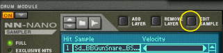 The sampling procedure is generic for all devices that can sample (Kong, NN-19, NN-XT and Redrum). The sampling and sample editing procedures are described in detail in the “Sampling” chapter.Refer to the “Sampling” chapter for details on how to set up and use the sampling feature.If you click the Edit Sample button with a sample selected in the display, the sample will open in the generic Edit Sample window. In this window you can edit the sample and save as a self-contained Song Sample. See “The Edit Sample window” in the Sampling chapter for details about editing samples.