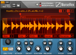 • On the Nurse Rex panel you can edit parameters that are common to all slices in the loaded REX loop: