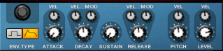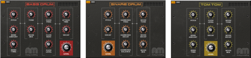 • This controls the overall output level of the Drum module to the FX1 and FX2 Slots (see “Signal flow”). The Level is also affected by velocity.