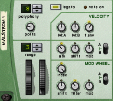 • This sets modulation wheel control of the Shift parameter of osc:A and/or osc:B (see “Controlling playback of the graintable”).
