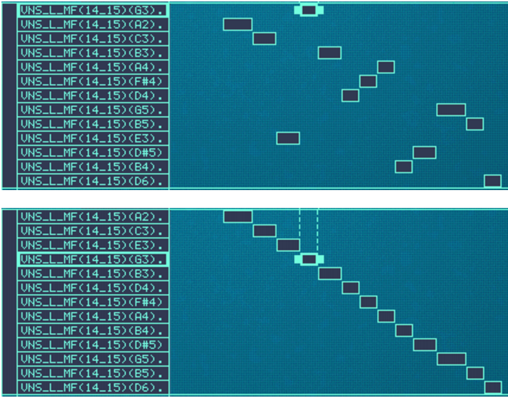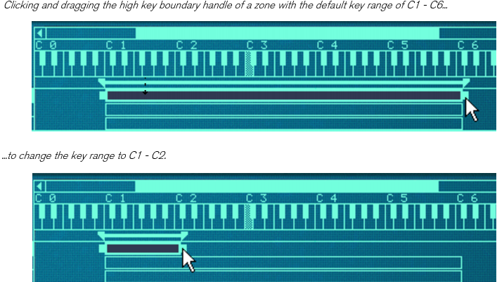 This is useful if you for example want to check how far up and down from its root key a sample can be played on the keyboard before starting to sound “unnatural”. The solo sample function can therefore be useful as a guide for setting up key ranges, as described in “Setting up Key Ranges”.Note however, that the sorting is done strictly on a group basis. That is, only zones that belong to the same group can be sorted in relation to each other.