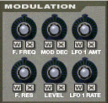 By turning the knobs, you decide how much the modulation and/or external control wheel should modulate the corresponding parameter.