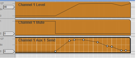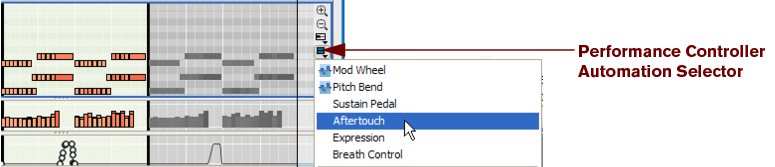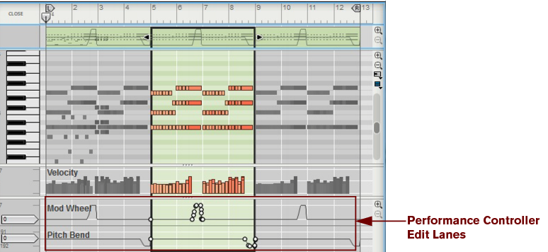 4. Afterwards, you can edit the performance controller events the same way as with regular parameter automation events (see “Editing parameter automation in Edit Mode”).This automatically removes superfluous automation events next time you record or draw events and simplifies the curves. Note that Snap (see “Snap”) also governs the number of events when drawing events.