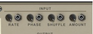 Modulation inputs and outputs LFO 1&2 input sections Rate Use this for dynamically modulating the Rate of the corresponding LFO. Attenuate the input signal with the knob. Phase Use this for dynamically modulating the Phase of the corresponding LFO. Attenuate the input signal with the knob. Shuffle Use this for dynamically modulating the Shuffle amount. Attenuate the input signal with the knob. Amount Use this for dynamically modulating the Level of the corresponding LFO. Attenuate the input signal with the knob. LFO 1&2 output sections CV There are two CV signal outputs for each LFO, plus two additional outputs for the CV signal phase inverted. Audio There are two Audio signal outputs for each LFO, plus two additional outputs for the Audio signal phase inverted. The difference between the Audio outputs and the CV outputs is that the signals on the Audio outputs have higher quality for use in e.g. audio processing applications. Output LFO 1+2 CV There is one CV signal output for the LFO 1 and 2 signals summed with each other. Audio There is one Audio signal output for the LFO 1 and 2 signals summed with each other at audio quality. Envelope connections Envelope Gate In A CV signal with a value > 0 present on this input will gate the Envelope (see “Envelope”). When the CV input signal decreases to zero or below, the gate is opened (deactivated). Envelope CV Out There is one CV signal output for the Envelope signal.