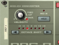 There is also a “Velocity CV” input at the back. If this is connected to a controller source (a LFO modulation output for example), the output will be a merge between the Velocity setting and the applied CV modulation by the LFO - see “CV Inputs”.