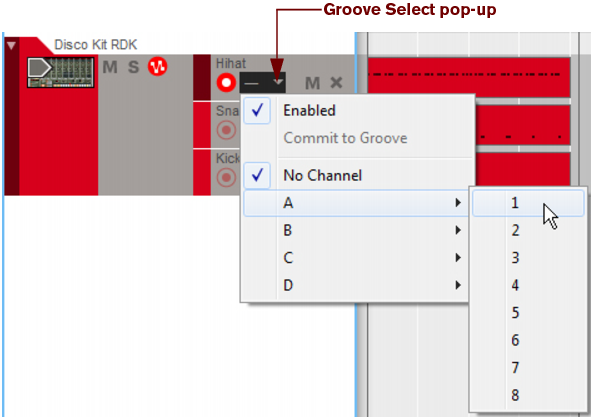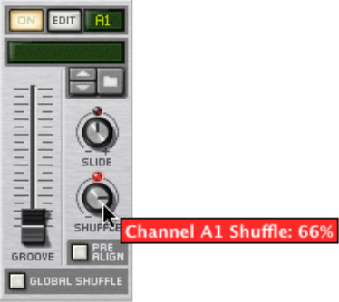 This is useful for comparing with the original, ungrooved beat. If you want to do this for several note lanes set to a particular ReGroove channel, use the “On” button for the channel in the ReGroove mixer instead (see “On Button”).