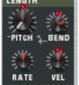 Redrum parameters Drum sound settings Redrum features ten drum sound channels that can each be loaded with a Wave or AIFF sample or a sample from a SoundFont bank. Although they are basically similar, there are three “types” of drum sound channels, with slightly different features. This makes some channels more suitable for certain types of drum sounds, but you are of course free to configure your drum kits as you like. On the following pages, all parameters will be listed. If a parameter is available for certain drum sound channels only, this will be stated. Mute & Solo At the top of each drum sound channel, you will find a Mute (M) and a Solo (S) button. Muting a channel silences its output, while Soloing a channel mutes all other channels. Several channels can be muted or soloed at the same time. You can also use keys on your MIDI keyboard to mute or solo individual drum sounds in real time. The keys C2 to E3 (white keys only) will mute individual drum channels starting with channel 1. The sounds are muted for as long as you hold the key(s) down. The keys C4 to E5 (white keys only) will solo individual drum channel, starting with channel 1. The sounds are soloed for as long as you hold the key(s) down. This is a great way to bring drum sounds in and out of the mix when playing Reason live. You can also record the drum channel Mutes in the main sequencer, just like any other controller (see “Recording parameter automation”). The Effect Sends (S1 & S2) On the back panel of Redrum you will note two audio connections labeled “Send Out” 1 and 2. When you create a Redrum device, these will by default be auto-routed to the first two “Chaining Aux” inputs on the Mixer device (provided that these inputs aren’t already in use). This feature allows you to add effects to independent drum sounds in the Redrum. Raising the S1 knob for a drum sound channel will send the sound to the first send effect connected to the mixer. Similarly, the S2 knob governs the send level to the second send effect in the mixer. Note that there must be send effects connected to the AUX Sends and Returns in the mixer for this to work. Also note that if Redrum is soloed in the Mixer the effect sends will be muted. Another way to add independent effects to drum sounds is to use the independent drum outputs. See “Connections”. Pan Sets the Pan (stereo position) for the channel. If the LED above the Pan control is lit, the sound uses a stereo sample. In that case, the Pan control serves as a stereo balance control. Level and Velocity The Level knob sets the volume for the channel. However, the volume can also be affected by velocity (as set with the Dynamic value, or as played via MIDI). How much the volume should be affected by velocity is set with the “Vel” knob. If the Vel knob is set to a positive value, the volume will become louder with increasing velocity values. The higher the Vel value, the larger the difference in volume between low and high velocity values. A negative value inverts this relationship, so that the volume decreases with higher velocity values. If the Vel knob is set to zero (middle position), the sound will play at a constant volume, regardless of the velocity. When Vel is set to zero, the LED above the knob goes dark. Length and the Decay/Gate switch The Length knob determines the length of the drum sound, but the result depends on the setting of the Decay/Gate switch: In Decay mode (switch down), the sound will decay (gradually fade out) after being triggered. The decay time is determined by the Length setting. In this mode, it doesn’t matter for how long a drum note is held (if played back from the main sequencer or via MIDI) - the sound will play the same length for short notes as for long notes. This is the traditional “drum machine” mode. In Gate mode (switch up), the sound will play for the set Length, and then be cut off. Furthermore, if a sound set to Gate mode is played from the main sequencer, from a CV/Gate device or via MIDI, the sound will be cut off when the note ends or after the set Length, depending on which comes first. Or in other words, the sound plays for as long as you hold the note, but the Length setting serves as the maximum length for the sound.There are several uses for the Gate mode: • For “gated” drum sounds, when the tail of the sound is abruptly cut off as an effect. • For when you want to use very short sounds, and don’t want them to “lose power” by being faded out. • For when you play the Redrum from the sequencer or via MIDI, with sounds for which the length is important (e.g. when using the Redrum as a sound effects module). Audio samples sometimes contain a “loop”, which is set by editing the audio in a sample editor. This loop repeats a part of the sample to produce sustain as long as you hold down a note. Drum samples usually don’t contain loops, but who is to say that Redrum should only play drum samples? Note that if a sample contains a loop, and Length is set to maximum, the sound will have infinite sustain, in other words it will never become silent, even if you stop playback. Decreasing the Length setting solves this problem. Pitch Sets the pitch of the sound. The range is +/- 1 octave. When the pitch is set to any other value than 0, the LED above the knob lights up to indicate that the sample isn’t played back at its original pitch. Pitch Bend By setting the Bend knob to a positive or negative value, you specify the start pitch of the sound (relative to the Pitch setting). The pitch of the sound will then be bent to the main Pitch value. Thus, selecting a positive Bend value will cause the pitch to start higher and bend down to the original Pitch, and vice versa. The Rate knob determines the bend time - the higher the value, the slower the bend. The Vel knob determines how the Bend amount should be affected by velocity. With a positive Vel value, higher velocity results in wider pitch bends. The Bend