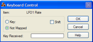 Keyboard Control Assigning computer keyboard remote commands does not involve MIDI, so there is no special setting up required. Keyboard commands can be assigned to parameters just as when using Remote Override mapping, but the functionality differs in one central aspect: • Keyboard Control commands can only be used to toggle on/off or min/max values for an assigned parameter. Hence, if you assign a computer keyboard remote command for a knob, slider or spin control, it will only switch between the minimum and maximum values for that parameter. The only exception to this are the multi-selector buttons used for various parameters such as envelope destination, for example. These will cycle through the available options when using keyboard control. Note that Keyboard Control cannot be used for the ReGroove Mixer parameters. Enabling Keyboard Control To enable Keyboard Control, select “Enable Keyboard Control” from the Options menu. Editing Keyboard Control To get an overview of which parameters are remote controllable select “Keyboard Control Edit Mode” from the Options menu. When done, each device you select in the rack will show a yellow arrow symbol beside every parameter that can be assigned a keyboard control. A section of a Redrum drum machine with Keyboard Control Edit Mode enabled. The Main Mixer channel strip parameters can also be controlled using the Keyboard Control function, but there is no Edit Mode for this. Instead, you have to right-click (Win) or [Ctrl]-click (Mac) on individual channel strip parameters and select “Edit Keyboard Control Mapping” from the context menu. If you click on an assignable parameter to select it, you can then select “Edit Keyboard Control Mapping” from the Edit menu. This opens a dialog allowing you to select a key command for that parameter. You may use any key except the [Space bar], [Tab], [Enter], the Numeric keypad keys (which is reserved for Transport functions) and the function keys (except [F2] and [F3]) - or a combination of [Shift] + any key (with the same aforementioned exceptions). The Keyboard Control dialog. Simply press the key (or Shift-key combination) you wish to use to remote control the parameter. The “Key Received” field momentarily indicates that it is “learning” the keystroke(s), and then the dialog displays the name of the key you have pressed. If [Shift] was used, the box beside the word Shift in the dialog is ticked. You can also double-click on the arrow for an assignable parameter to set up keyboard control: A rotating yellow rectangle appears, indicating Learn mode. Press the key (or key combination) you wish to use to control the parameter. The rotating stops and the rectangle will now display the key or key combination you used. About the two Edit Keyboard Control Modes If Keyboard Control Edit Mode is enabled (ticked) on the Options menu, assigned parameters in the rack are “tagged”, showing the remote key for that parameter. In this mode, however, you cannot operate Reason normally. This mode is primarily for overview of available parameters and the current assignments. Another way to assign keyboard remote commands is to have “Keyboard Control Edit Mode” deselected on the Options menu, and to simply right-click (Win) or [Ctrl]-click (Mac) the parameter you wish to remote control. This opens a pop-up menu, where one of the options will be “Edit Keyboard Control Mapping”. Selecting this opens the Keyboard Control dialog. Thus, you do not have to enable/disable Edit mode from the Options menu if you know that a parameter is assignable. This is the only way Main Mixer channel strip parameters can be assigned to Keyboard Control.