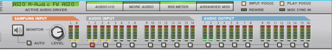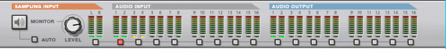 If you want to sample external audio, e.g. from a mic or an instrument connected to the audio hardware on your computer, make sure you have set up the desired audio input(s) on the Audio tab in Preferences, see “Active input and output channels”. Available audio inputs are indicated with yellow or green LEDs on the Hardware Interface in the rack: