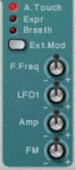 External Modulation Subtractor can receive common MIDI controller messages, and route these to various parameters. The following MIDI messages can be received: • Aftertouch (Channel Pressure) • Expression Pedal • Breath Control If your MIDI keyboard is capable of sending Aftertouch messages, or if you have access to an Expression Pedal or a Breath controller, you can use these to modulate parameters. The “Ext. Mod” selector switch sets which of these message-types should be received. These messages can then be assigned to control the following parameters: | Destination | Description F. Freq This sets External modulation control of the Filter 1 Frequency parameter. A positive value will increase the frequency with higher external modulation values. Negative values invert this relationship. LFO 1 This sets External modulation control of the LFO 1 Amount parameter. A positive value will increase the LFO 1 amount with higher external modulation values. Negative values invert this relationship. Amp This let’s you control the overall volume of the sound with external modulation. If a positive value is set, the volume will increase with higher external modulation values. A negative value inverts this relationship. FM This sets External modulation control of the FM Amount parameter. If a positive value is set, the FM amount will increase with higher external modulation values. A negative value inverts this relationship. Both oscillators must be activated for this to have any effect.