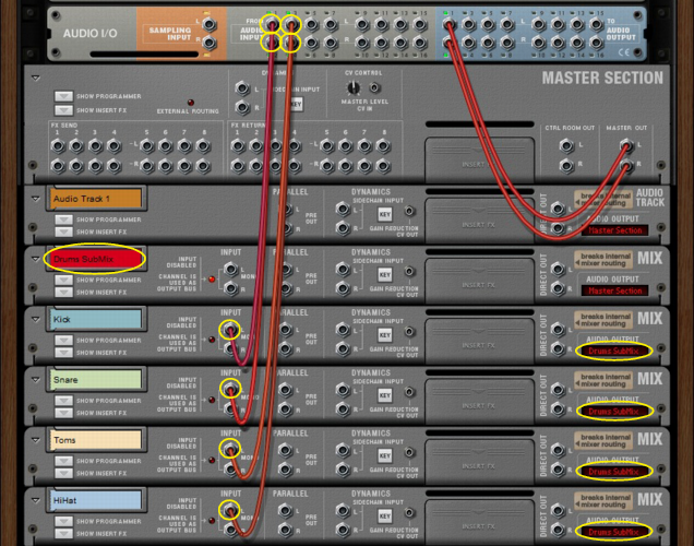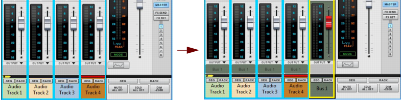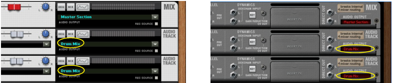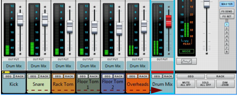 Output Busses allow you to create sub-mixers. Sub-mixers can be very useful for pre-mixing a multi-mic’ed drum kit, or a horn section, for example. You can also use a sub-mixer configuration to route several external input signals (from separate microphones, for example) for recording onto a single audio track (see “Recording a sub-mix onto an audio track”). You can have as many mix busses as you like in a Reason song.See “Recording audio from Mix Channel outputs” for more details.