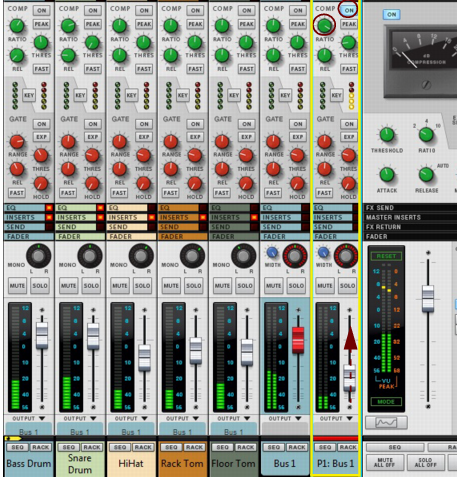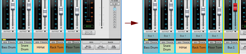 Parallel Channels A very flexible way of working with insert effects is to use parallel channels that host the effects, while keeping the dry signal of the source channel intact. This way you can freely control the levels of the dry signal and the separate effects - and also control the sound of each effect individually from each of the parallel channels. You could, for example, have one parallel channel with a compressed distortion effect, another parallel channel with a Delay, and so on. Then, you can freely EQ the effects in each of the parallel channels, as well as control their levels individually from each Fader. Creating Parallel Channels Parallel channels can be created as follows: 1. Select the source Mix/Audio Track channel strip in the Main Mixer, or its device in the rack. 2. Select “Create Parallel Channel” from the Edit menu or context menu. A new Mix Channel is created and placed to the right of your original channel in the Main Mixer: A Parallel Channel created for Audio Track 1. The parallel Mix Channel is automatically named “P1: <source channel name>” and its channel header is colored according to the source mixer channel header. Both the source channel and the parallel channel also get shorter channel headers to indicate they are routed in a parallel configuration. If you want to add more parallel channels to your source channel, select the last created parallel channel and select “Create Parallel Channel” from the Edit menu or context menu. This adds another parallel channel to your source channel: Another Parallel Channel created for Audio Track 1. In the rack, the Parallel out jack(s) of the source Mix Channel/Audio Track device are automatically connected to the Direct Input jack(s) of the first parallel Mix Channel. The second parallel Mix Channel is then connected to the first parallel Mix Channel, and so on: Parallel Channels 1 and 2 for the Audio Track 1 source channel in the rack. Since the Audio Track/Mix Channel device only has one pair of Parallel out jacks, any additional parallel channels have to be created from the last created parallel channel. If your original channel is in mono, only the left parallel output is connected to the left input of the parallel channel. 3. Now, you can create Insert FX in each of the parallel channels and process the signal of your source channel separately, in parallel. It might also be a good idea to create a separate Output Bus for the source channel and all parallel channels, see “Creating an Output Bus”. Creating a Parallel Output Bus Parallel channels can also be created for Output Bus channels, for parallel processing of the entire Bus signal. The following example shows a drum kit, with a channel for each drum, that we want to assign to an Output Bus and apply parallel compression to: 1. [Shift]-select all drum channels in the mixer. 2. Press [Ctrl]+[G](Win) or [Cmd]+[G](Mac) to create a new Output Bus to automatically route the drum channels to. A new Output Bus channel, named “Bus 1”, is created to the right and the selected channels are automatically routed to it as indicated on the channels’ Output labels. 3. Select the “Bus 1” channel in the mixer and select “Create Parallel Channel” from the Edit menu or context menu. A parallel channel, the “P1: Bus 1” is created and the “Bus 1” Output Bus channel is automatically connected to it. 4. Activate the Compressor in the “P1: Bus 1” parallel channel and raise the Compression Ratio up high. 5. Raise the Level fader on the “P1: Bus 1” channel to gradually introduce the heavily compressed sound (in parallel with the dry signal of the “Bus 1” channel). Deleting Parallel Channels To delete a Parallel Channel, select its mixer channel strip - or its device in the rack - and press [Delete] or [Backspace]. Confirm the deletion in the alert that appears. Naming Parallel Channels When you create a Parallel Channel it is automatically named after its source channel according to: “P1: <source channel name>”, where “P” stands for Parallel and “1” for the first parallel channel. If you add on more parallel channels, the following channels are named “P2: <source channel name>” and so on. If you change the name of the source channel, all the parallel channel are automatically renamed accordingly. You can then manually rename each parallel channel afterwards if you like. To revert to the automatically generated name, double-click the parallel channel’s name, press [Delete] or [Backspace] and then [Enter].