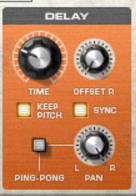 While the parameters specific to The Echo are described in detail below, some features and procedures are common to all effect devices. Please refer to “Common effect device features” for further info about the Bypass On/Off switch. It should however be noted that the Input Meter on The Echo differs from the standard 7-segment LED meter found on other effect devices in Reason; The Echo features a 3-segment meter with the usual green, yellow and red LED (the latter indicates clipping).