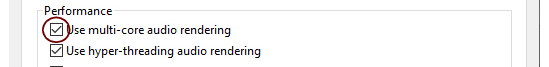 | Comment: See “About latency” for more information about buffer size and latency. Also see “About audio rendering using the audio card buffer size setting” below for information on how to improve the DSP performance.The “Render audio using audio card buffer size setting” function should be selected (checked) for best plugin performance. When selected, the audio batches are rendered internally according to the set Buffer size (see “Buffer Size settings” above). For example, if you have a Buffer size of 512 Samples, each audio batch will be 512 samples internally. Raising the Buffer size will let Reason process larger audio batches in one go, which is often more efficient. Many plugins are also more efficient when doing larger audio batches. if you are using DSP-heavy VSTs (mastering effects, for example), these will run a lot smoother with this function selected.You could also use the MClass Maximizer as an insert effect on the Master Section in the Main Mixer to ensure that clipping never occurs - see “The MClass Maximizer”.