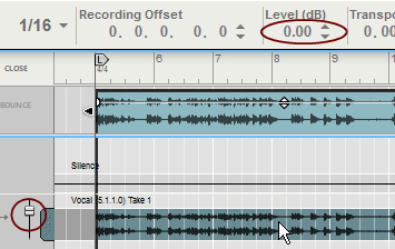 In this section we will describe audio editing procedures that are common for Single Take clips and Comp clips when edited in the Comp Editor. Comp clip specific procedures are described in “Comping audio”.Click and drag these handles horizontally to introduce a fade in and/or fade out of the audio in the clip. The fading is non-destructive and can be changed at any time. If Snap is activated (see “Snap”), the set (Arrange Mode) Snap value is taken into account when moving the Fade Handles.