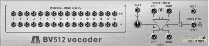 There are several interesting uses for the Individual band levels connectors: you can cross-patch frequency bands so that e.g. low frequencies in the modulator signal controls high frequency bands in the vocoder, you can extract CV signals for controlling synth parameters in other devices, you can base the vocoding on CV signals from other devices rather than on a modulator signal, etc. See “Using the individual band level connections” for details.