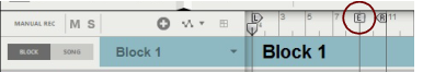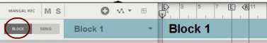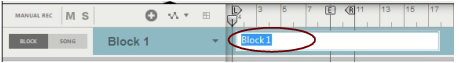 Editing Blocks in the Block View Selecting a Block for editing Selecting a Block for editing is done in the Block View. Select the Block you want to work with as follows: 1. Make sure “Enable Blocks” is activated on the Options menu. 2. Click the Block button on the Blocks Track to switch to Block View. Block 1 appears by default on the arrangement pane: 3. Select a Block (1-32) from the Blocks drop-down list in the Track List if desired. In this example, we will stick to Block 1. The Block name is shown on the Blocks Track. Renaming Blocks If you don’t want to use the default Block names you can easily rename them: Double-click the Block name on the Blocks Track in the Block View, type in a new name and press [Return]. Defining the Block length The length of a Block is defined using the End Marker in the Blocks view: 1. Select desired Block in the Block View as described in “Selecting a Block for editing”. 2. Adjust the End Marker to the desired position by clicking and dragging it in the Ruler. • The Block length is always defined from the beginning of the Ruler to the End Marker. The Left and Right Loop Locators have no influence on the Block length. • When the sequencer is running in Block View, it will automatically loop at the End Marker. The Loop Locators can also be used in Block View to loop at other positions, if Loop On/Off is activated on the Transport Panel. However, in Song View the Loop Locator settings used in the Block View will be ignored. • The Block length can be set individually for each of the 32 Blocks. • The Block length can be changed at anytime by adjusting the End Marker in the Blocks view. Changing Block color Selecting separate colors for your blocks can be useful when you arrange your blocks in the Song View later on. All 32 Blocks already have default colors but these can easily be changed: Select a color from the Block Color palette on the Blocks Track context menu or from the Edit menu. This applies the selected color to the Block. The sequencer tracks and any clips in the Block will maintain their original colors. Recording in the Block View Recording on tracks in the Block View is done in the same ways as when recording in the regular Song View. Any events or recordings to the right of the End Marker in the Block View will be ignored when the Block is played back in the Song View. Refer to “Recording in the Sequencer” for details about recording. Editing clips in the Block View Editing events in clips in the Block View is done in the same way as when editing clips in the Song View. Double-click desired clip to open it for editing in Edit Mode, or click the Edit Mode button in the Toolbar. Refer to “Note and Automation Editing” and “Audio Editing in the Sequencer” for details about editing clips. Arranging clips in the Block View Arranging clips in the Block View is done in the same ways as when arranging clips in the Song View. Any clips, or parts of clips, to the right of the End Marker in the Block View will be ignored when the Block is played back in the Song View. Refer to “Arranging in the Sequencer”.