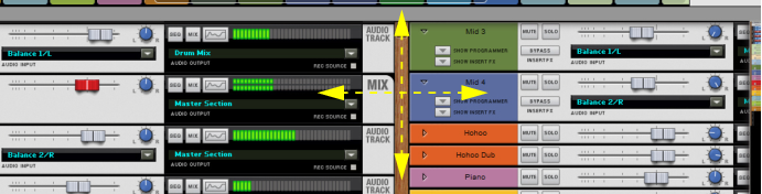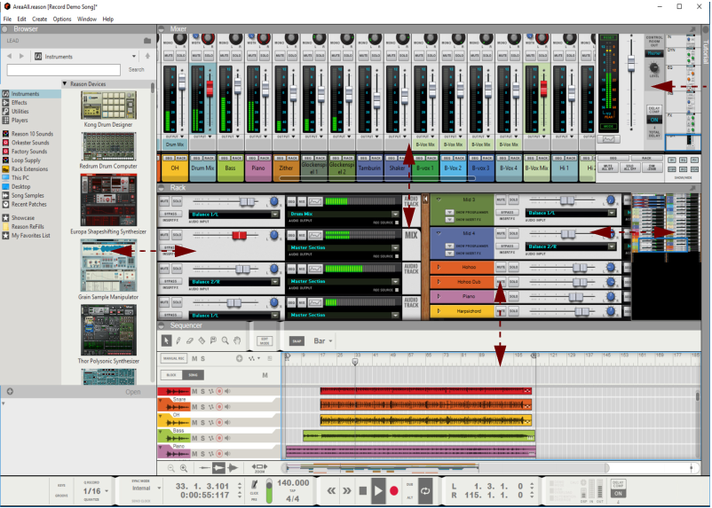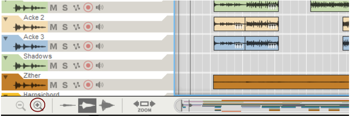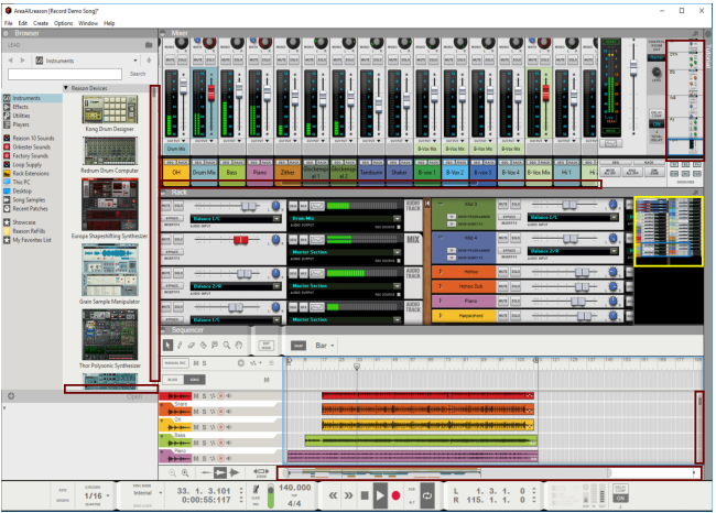 In the Sequencer you have to manually switch to the Hand Tool by selecting it from the sequencer Toolbar. With the Hand Tool selected, you can scroll in any direction on the Edit/Arrangement Pane. Refer to “Hand Tool” for more information.In the Sequencer it’s possible to zoom in and out horizontally using the Song Navigator. You can also use the Magnifying Glass Tool on the Sequencer Toolbar to zoom vertically - see “Magnifying Glass Tool”. In addition to this, it’s also possible to set a zoom level for the audio recordings inside the Audio Clips.Using the Small Waveform Zoom Mode is especially useful if you have recorded with the Clip Safe function (see “Recording using the Clip Safe function in Propellerhead Balance”) where the dynamic range can be quite wide.