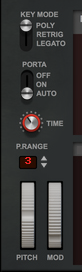 • Select this if you want to play Europa polyphonically. The maximum number of voices is 16. The number of voices is set in the Voices control at the center right of the Europa panel, see “Voices”.