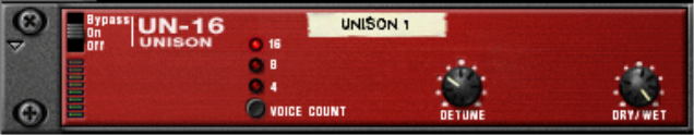The UN-16 simulates the sound of several detuned voices playing the same notes simultaneously. The voices are individually slightly delayed and also pitch modulated by low frequency noise. This produces a rich chorus effect with the voices spread across the stereo field (given that stereo outputs are used).