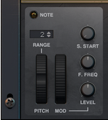 Note that if the Cutoff parameter in the Filter section (see “Cutoff”) is at 20 Hz, the frequency cannot be lowered any further. Similarly, if the Cutoff parameter in the Filter section is at 25 kHz, the frequency cannot be raised any further.