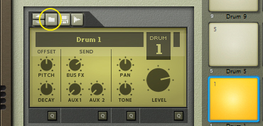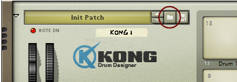4. These parameters are described in “The Drum Control Panel”. Note that the Drum Control Panel parameters are “global” for each Drum channel. Each drum sound can consist of a number of different sound and FX modules, each with their separate set of parameters. Refer to “The Drum modules”, “The Support Generator modules” and “The FX modules” for details about all the modules that can be used to build up a complete Drum sound.Note however, that you don’t necessarily need to save the Drum patch - all settings are included when you save a Kong Kit Patch (see “Saving Kit Patches”) and/or your song.