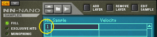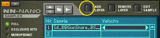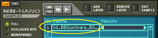 The NN-Nano can handle samples or sets of samples for each of the four different Hit Types described in “Assigning Hit Type to Pads”. Each Hit Type can contain one or several samples which can be layered and/or altered and controlled individually via velocity.