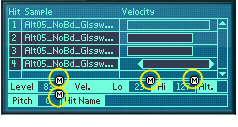 • Edit the Hit Name if you like by clicking in the Hit Name box, typing in a new name and then pressing [Enter]. The name will appear in the Hit Type display on the main panel (see “Assigning Hit Type to Pads”).