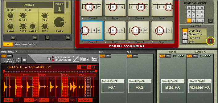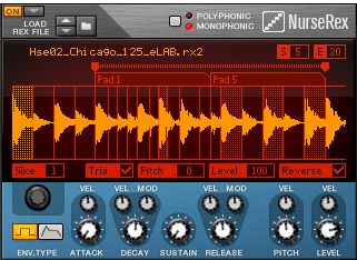 • On the Nurse Rex panel you can edit parameters that are common to all slices in the loaded REX loop: