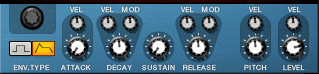 • This controls the overall output level of the Drum module to the FX1 and FX2 Slots (see “Signal flow”). The Level is also affected by velocity.