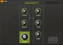• This controls the overall output level of the Synth Hi-hat module to the FX1 and FX2 Slots (see “Signal flow”). The Level is also affected by velocity.