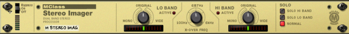 The MClass Stereo Imager The MClass Stereo Imager splits the signal into two frequency bands; “Hi” and “Lo” and allows you to widen or narrow the stereo image of each band. A typical application of the Stereo Imager is to widen the higher frequencies and narrow the lower frequencies. This will make the bass end “tight” whilst “opening up” the higher frequencies. This is most often used as an insert effect in stereo. The MClass Stereo Imager does not create stereo from mono input! For the device to work properly it must connected with stereo in/out, and the input signal must contain a stereo audio signal. Parameters The following parameters are available: | Parameter | Description X-Over Frequency This determines the crossover frequency between the Hi and Lo band. Range is 100 Hz - 6 kHz. Frequencies below this will be affected by the Lo Width setting; frequencies above will be affected by the Hi Width setting. Lo Width This adjusts the stereo width for the Lo band. Turn anti-clockwise to narrow the stereo width (i.e. to make it more “mono”), and clockwise to widen the stereo image. Center position means no change from original signal. The “Active” LED indicates whether Low Width is activated or not. Note that for the Lo band, it is more common to narrow the stereo image, as the low frequency content in a mix is usually mixed center and can become less defined if widened. Hi Width This adjusts the stereo width for the Hi band. Turn anti-clockwise to narrow the stereo width (i.e. to make it more “mono”), and clockwise to widen the stereo image. Center position means no change from original signal. The “Active” LED indicates whether Hi Width is activated or not. Solo switch This allows you to listen to the Lo and Hi bands separately, for reference purposes. “Normal” is the standard operating mode. Connections Apart from standard L/R inputs and outputs, there are also “Separate” L/R outputs on the back panel. The Separate outputs can either carry the Lo or Hi band output, which is set by the switch beside the outputs. These outputs can be used to apply processing separately to either the Lo or Hi band. If you set the Solo switch to “Lo” and the Separate output switch to “Hi”, the device will operate as a basic crossover filter, delivering the Lo band signal from the main output and the Hi band signal from the Separate out.