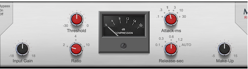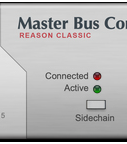 Panel reference Global controls Mix Set the mix between dry and processed signal with the Mix knob. By setting a mix <100% you can use the Master Bus Compressor for parallel processing, i.e. the dry and effect signals are being output together. Compression controls Compressors reduce the dynamic range by evening out the difference between loud and quiet signals. This makes signal levels easier to balance, and can add punch and sustain to the sound, as well as “glue” together a final mix. The parameters are as follows: Input Gain Adjust the input gain to the Master Bus Compressor. Range: +/- 18.00 dB Threshold Set the level at which onset of compression should occur. The lower the Threshold, the more compression is applied.Range: -30 dB to 0 dB Ratio Ratio specifies the amount of gain reduction applied to signal levels above the set Threshold. A 2:1 compression ratio effectively means that a signal level 2dB above threshold will have a signal gain of 1dB. Set the amount of gain reduction applied to the signal above the set Threshold. Range: 2:1, 4:1 and 10:1 Attack Set the time it should take before the compressor should react to signals above the set Threshold. Range: 0.1 ms, 0.3 ms, 1 ms, 3 ms, 10 ms and 30 ms. Release Set the time it should take before the compressor lets the sound through unaffected - after the signal level drops below the set Threshold. If set to “Auto”, the Release time will be program adaptive, so the Release time is automatically increased following long peaks and decreased following short peaks.Range: 0.1 s, 0.3 s, 0.6 s, 1.2 s and “Auto”. Make Up Make-Up gain compensates for level reduction caused by compression and helps maintain a steady output level. Adjust the output gain from the Master Bus Compressor device. Range: - 5 dB to + 15.00 dB Compressor Gain Reduction Meter The meter shows the gain reduction amount in dB applied by the compressor. External Sidechain You can use external signals to trigger the Master Bus Compressor. This is done by connecting an external signal to the Sidechain Inputs on the back of the Master Bus Compressor. The Sidechain inputs. When a cable is connected to the Sidechain Input(s) the “Connected” LED is lit on the front panel: Click the Sidechain button to “key” (trigger) Master Bus Compressor from the external signal instead of the channel signal. For example, you could use a kick drum pattern to trigger the sidechain function, to achieve a rhythmic pumping effect.