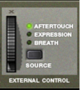 NN-XT can receive common MIDI controller messages, and route these to various parameters. You use the “Source” selector switch to determine which type of message should be received: