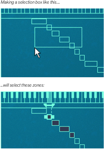 Note that the zones don’t have to be completely encompassed by the selection box. The selection box only have to intersect parts of the zones to include them in the selection.
