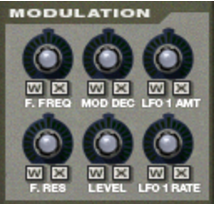 By turning the knobs, you decide how much the modulation and/or external control wheel should modulate the corresponding parameter.
