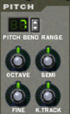 • This will make the envelope modulate the pitch, as set in the Pitch section (see “The Pitch section”). Turn the knob to the right to raise the pitch and to the left to lower the pitch. In the middle position, pitch will not be affected by the envelope.
