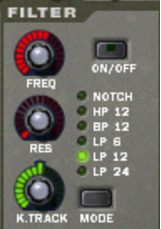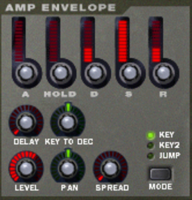 • This will make the envelope modulate the cutoff frequency of the Filter (see “The Filter section”). Turn the knob to the right to increase the frequency and to the left to lower the frequency. In the middle position, the envelope will have no effect on the cutoff frequency.Most of the Amplitude Envelope parameters are identical to those of the Modulation Envelope. So for a detailed description of the following parameters, please refer to the modulation envelope section in “The Modulation Envelope”: