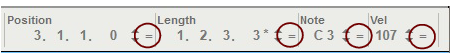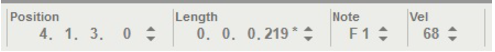 If you select a note, four displays appear in the Inspector, showing the event (start) Position, Length, Note