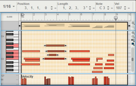 If several selected events have the same start position, the displays will show the values for the event with the lowest Note value (for note events) or lowest Value (for automation events).
