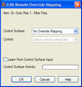 Another way to map parameters is to have “Remote Override Edit Mode” deactivated on the Options menu, and to simply right-click (PC) or [Ctrl]-click (Mac) on the parameter you wish to remote control.