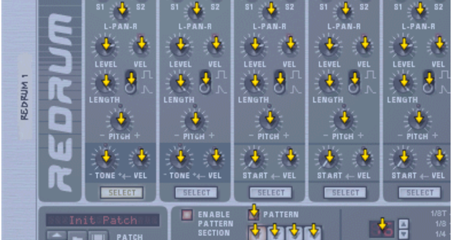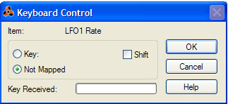 Keyboard Control Assigning computer keyboard remote commands does not involve MIDI, so there is no special setting up required. Keyboard commands can be assigned to parameters just as when using Remote Override mapping, but the functionality differs in one central aspect: • Keyboard Control commands can only be used to toggle on/off or min/max values for an assigned parameter. Hence, if you assign a computer keyboard remote command for a knob, slider or spin control, it will only switch between the minimum and maximum values for that parameter. The only exception to this are the multi-selector buttons used for various parameters such as envelope destination, for example. These will cycle through the available options when using keyboard control. Note that Keyboard Control cannot be used for the ReGroove Mixer parameters. Enabling Keyboard Control To enable Keyboard Control, select “Enable Keyboard Control” from the Options menu. Editing Keyboard Control To get an overview of which parameters are remote controllable select “Keyboard Control Edit Mode” from the Options menu. When done, each device you select in the rack will show a yellow arrow symbol beside every parameter that can be assigned a keyboard control. A section of a Redrum drum machine with Keyboard Control Edit Mode enabled. The Main Mixer channel strip parameters can also be controlled using the Keyboard Control function, but there is no Edit Mode for this. Instead, you have to right-click (Win) or [Ctrl]-click (Mac) on individual channel strip parameters and select “Edit Keyboard Control Mapping” from the context menu. If you click on an assignable parameter to select it, you can then select “Edit Keyboard Control Mapping” from the Edit menu. This opens a dialog allowing you to select a key command for that parameter. You may use any key except the [Space bar], [Tab], [Enter], the Numeric keypad keys (which is reserved for Transport functions) and the function keys (except [F2] and [F3]) - or a combination of [Shift] + any key (with the same aforementioned exceptions). The Keyboard Control dialog. Simply press the key (or Shift-key combination) you wish to use to remote control the parameter. The “Key Received” field momentarily indicates that it is “learning” the keystroke(s), and then the dialog displays the name of the key you have pressed. If [Shift] was used, the box beside the word Shift in the dialog is ticked. You can also double-click on the arrow for an assignable parameter to set up keyboard control: A rotating yellow rectangle appears, indicating Learn mode. Press the key (or key combination) you wish to use to control the parameter. The rotating stops and the rectangle will now display the key or key combination you used. About the two Edit Keyboard Control Modes If Keyboard Control Edit Mode is enabled (ticked) on the Options menu, assigned parameters in the rack are “tagged”, showing the remote key for that parameter. In this mode, however, you cannot operate Reason normally. This mode is primarily for overview of available parameters and the current assignments. Another way to assign keyboard remote commands is to have “Keyboard Control Edit Mode” deselected on the Options menu, and to simply right-click (Win) or [Ctrl]-click (Mac) the parameter you wish to remote control. This opens a pop-up menu, where one of the options will be “Edit Keyboard Control Mapping”. Selecting this opens the Keyboard Control dialog. Thus, you do not have to enable/disable Edit mode from the Options menu if you know that a parameter is assignable. This is the only way Main Mixer channel strip parameters can be assigned to Keyboard Control.
