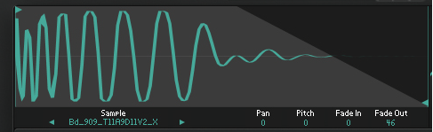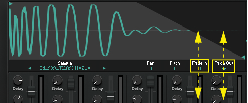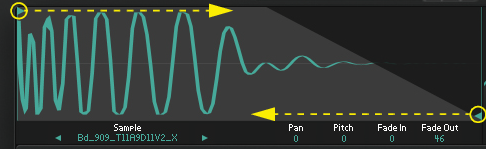 Any fade in/out is shown graphically in the sample display.