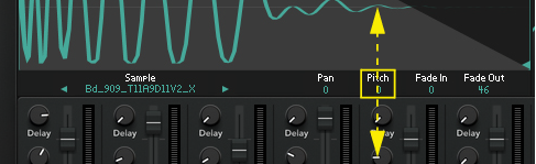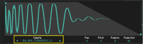 The Sample Playback section contains all sample related controls and parameters for the currently selected Drum Channel. The currently selected Drum Channel is indicated by the lit Drum Channel selection button (see “Selecting a Drum Channel”).