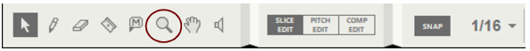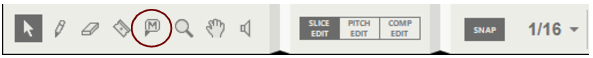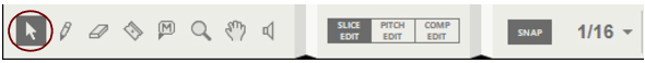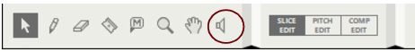 The Speaker Tool is used for auditioning slices or notes in Single Take audio clips, and for auditioning individual recordings on Comp Rows in Comp Clips. See “Slice Edit mode tools”, “Auditioning notes” and “Comp Editor audio editing tools” for details.